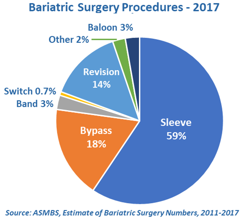 So it’s not surprising that many people opt for the safest procedure when they come to the realization that bariatric surgery will benefit them. Today, more than three times as many people opt for a sleeve as for a bypass.