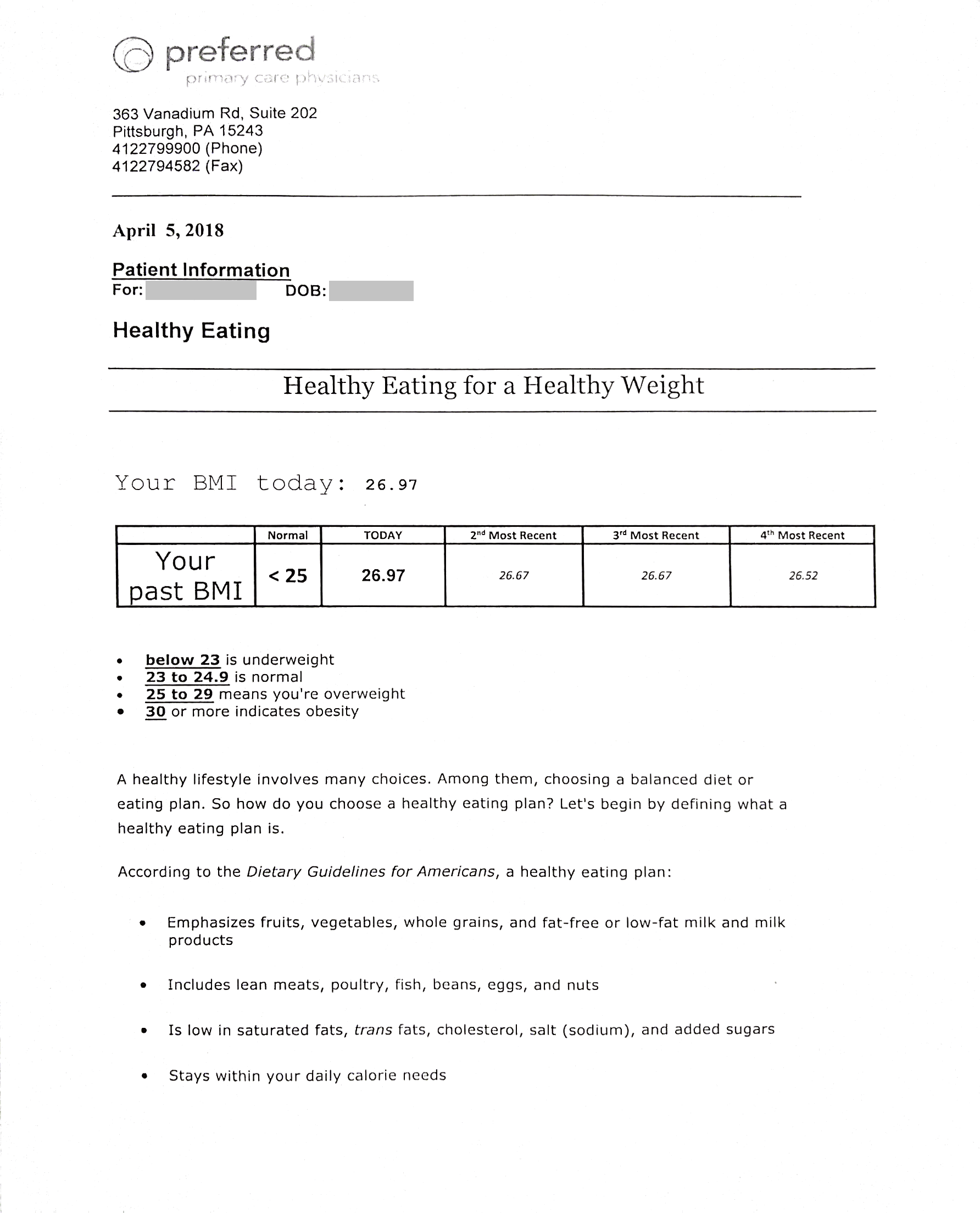 You’ll find this ignorance even in most primary care providers. The form on the right is what passes for “counseling” about a healthy weight. A provider typically hands it to a patient on the way out of a “preventive care” visit.