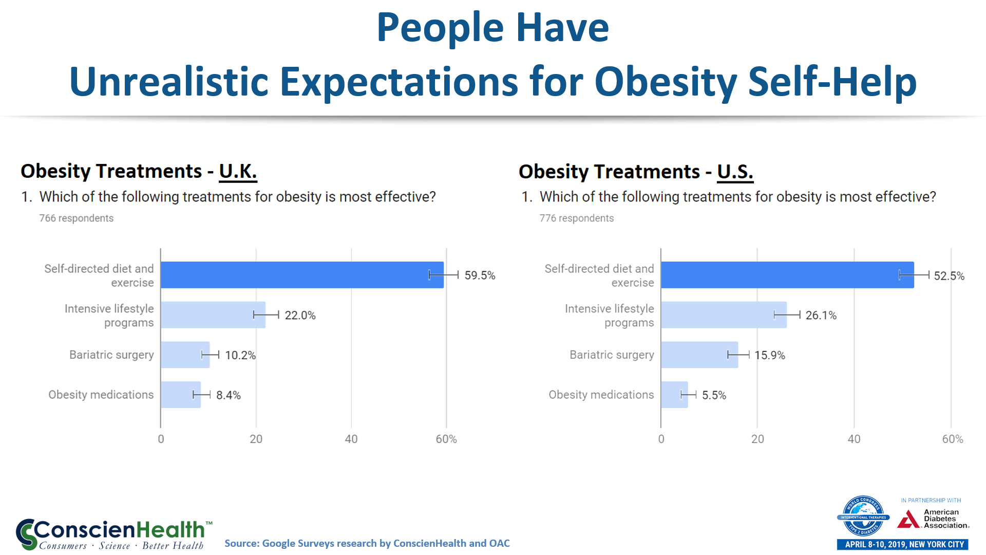 So people can rationalize avoiding surgery. They tell themselves that self-help should be enough. “You can do it. Don’t take the easy way out.” That sums up the sentiment, and ConscienHealth’s Ted Kyle presented public opinion data to show that such thinking is dominant in both the U.S. and the U.K. Maybe a bit more so in the U.K.