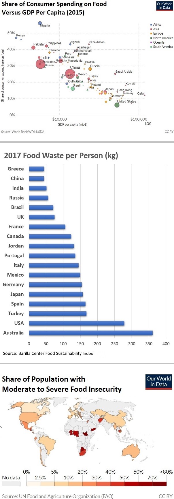 In fact, the numbers for U.S. food waste provide a degree of confirmation. Americans waste more food per capita than many other countries. For example, Canadians waste about 123 kilos per year per person. Americans waste more than twice as much – 278 kilos.