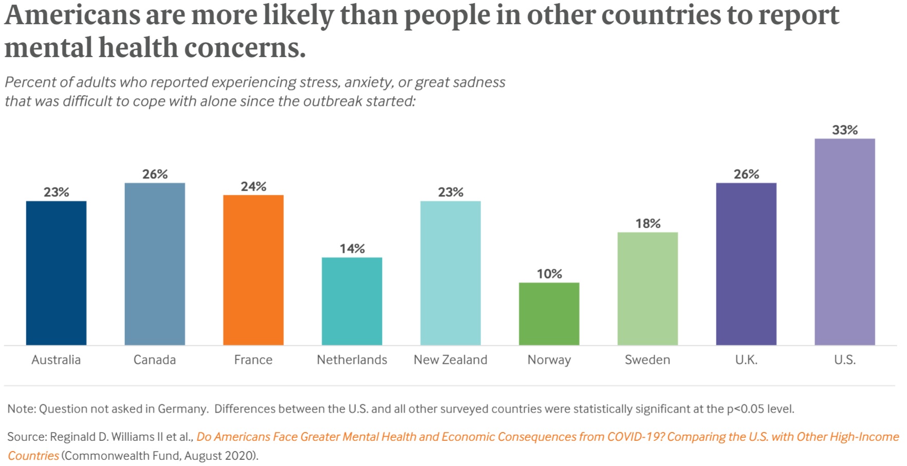 The Commonwealth Fund tells us that more Americans are feeling the mental health impact of COVID-19. The Fund surveyed 8,295 from the U.S. and nine other high-income countries. Roughly a third of Americans are having difficulty coping with stress or sadness since the pandemic began. Yes, by this measure, America is #1. So if you’re having such feelings, know that you are not alone.