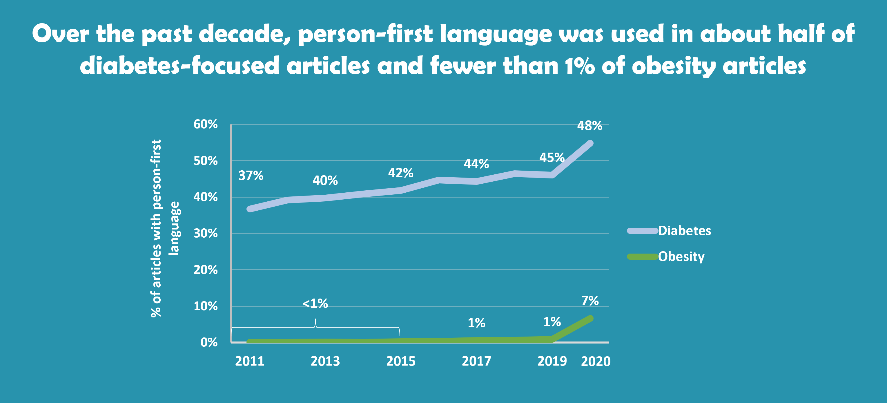 The language we use about obesity and diabetes tells us a lot about how we think about these diseases. When we write about diabetes or obesity, we are writing about a medical condition. But when we write about diabetic and obese persons, we mix the diseases with the identity of the persons who have it.